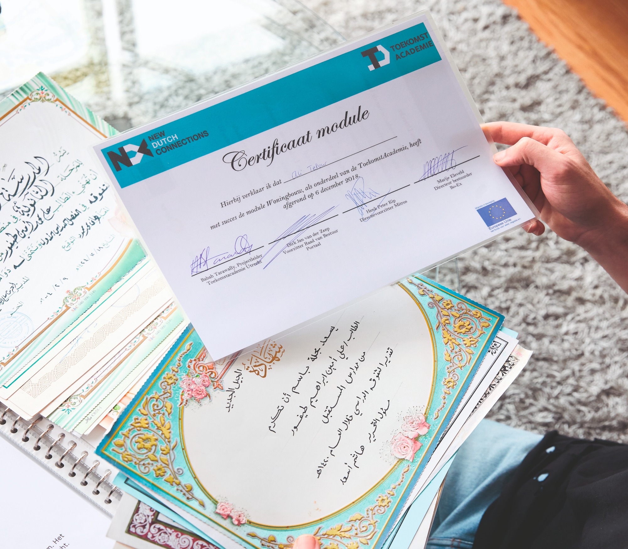 Anderhalf jaar geleden richtte Ali fingers.group op, een artistieke groep van kunstenaars uit Syrië. Ook werkte hij de afgelopen jaren vrijwillig in verschillende organisaties en bedrijven. Als hij zijn studie architectuur heeft afgerond, wil hij graag een betaalde baan. Afgelopen najaar volgde hij een project van New Dutch Connections, een organisatie die met de hulp van bedrijven statushouders helpt een plek te vinden in de samenleving. Via trainingen en coaching van professionals krijgen ze inzicht in hun wensen en mogelijkheden. Bo-Ex, Mitros en Portaal namen de statushouders bijvoorbeeld tijdens workshops mee in het werk van een corporatie. Ali vond het fijn om mee te mogen doen aan New Dutch Connections. "Ik weet nu beter hoe het hier werkt als je een baan zoekt. Verder heb ik veel mensen ontmoet. Dat helpt me bij mijn weg vinden in Nederland."