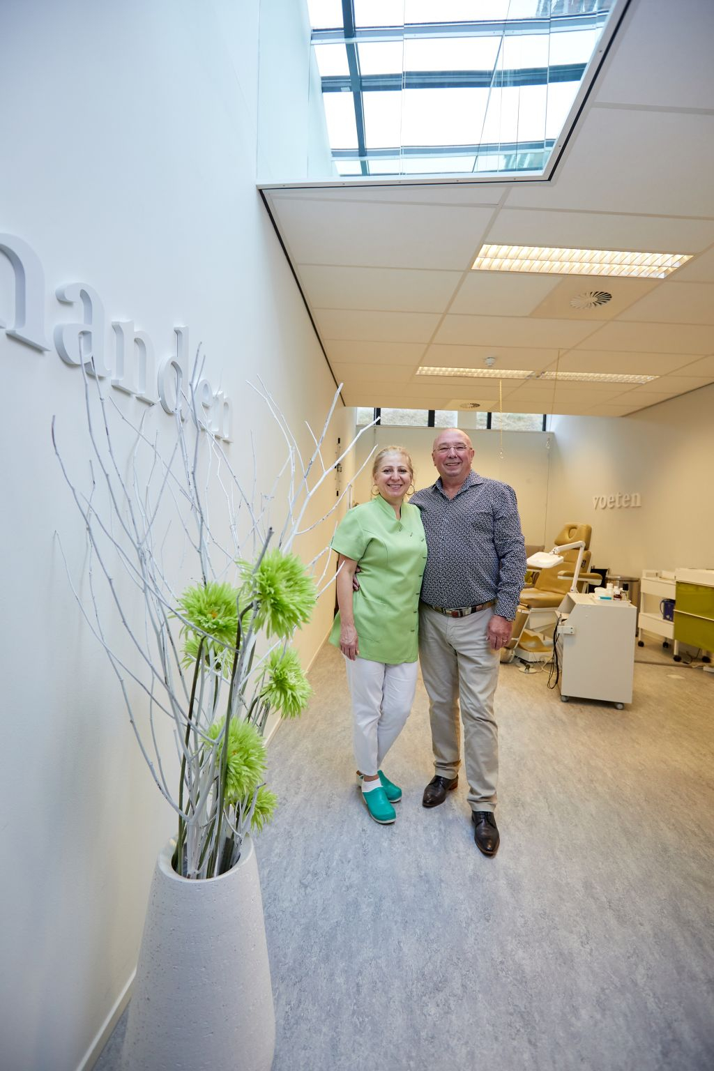 Toen ze hier kwamen wonen, zag Hennie op de begane grond een grote, lege ruimte. "Die werd als opslag gebruikt. Zonde, vond ik. Het zou een prachtige ruimte zijn voor Adriana's salon. Dan had zij haar werk dicht bij huis en de hal werd er levendiger van." Bo-Ex stond open voor het idee en op Hennies aanraden werd de ruimte gesplitst. In het ene deel kwam een fysiotherapiepraktijk en in het andere deel Adriana's pedicure- en manicuresalon. "Een paar maanden nadat we hier kwamen wonen, ging de praktijk open. Heel fijn dat Bo-Ex ons erbij wilde helpen."