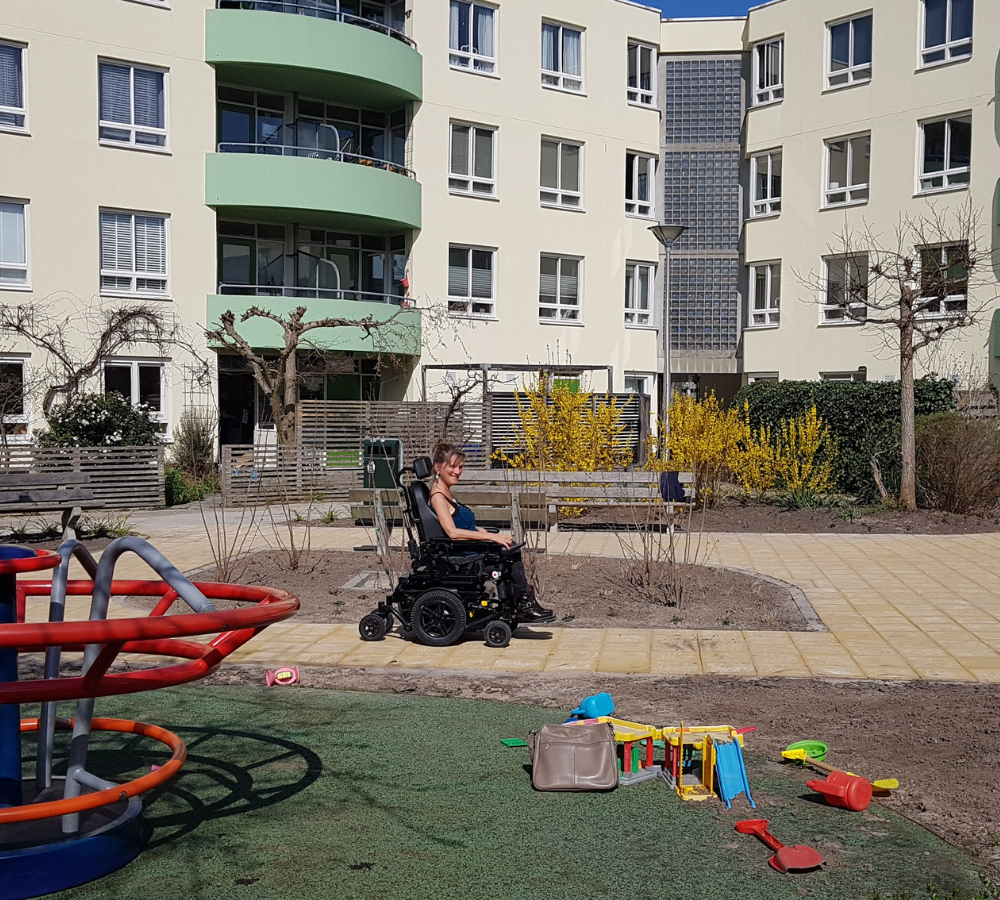 Jacqueline Kool is een van de bewoners van de FOKUS-woningen aan het Gerrit Rietveldhof. "In het hofje stonden wat grote dingen, zoals een pingpongtafel. Ik zit in een rolstoel en dan staat zoiets enorm in de weg. Ik vond dat het hof gezelliger én groener moest worden. Gelukkig was ik niet de enige die er zo over dacht."